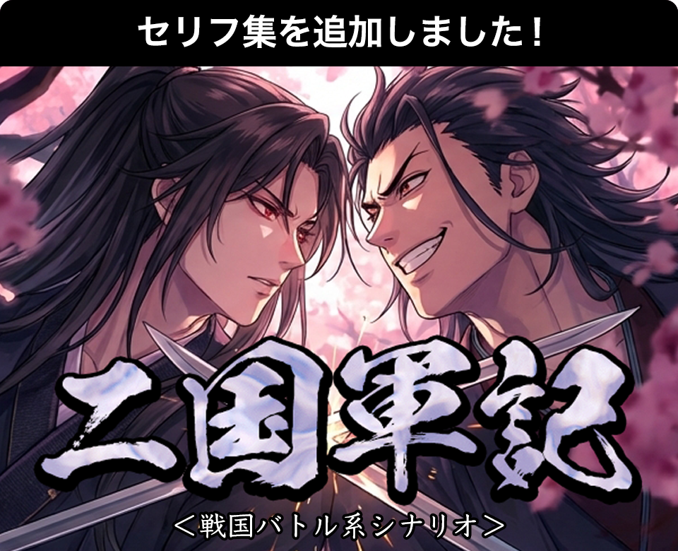 ソロセリフ中心の単発セリフで壮大な戦国の物語を描いています。